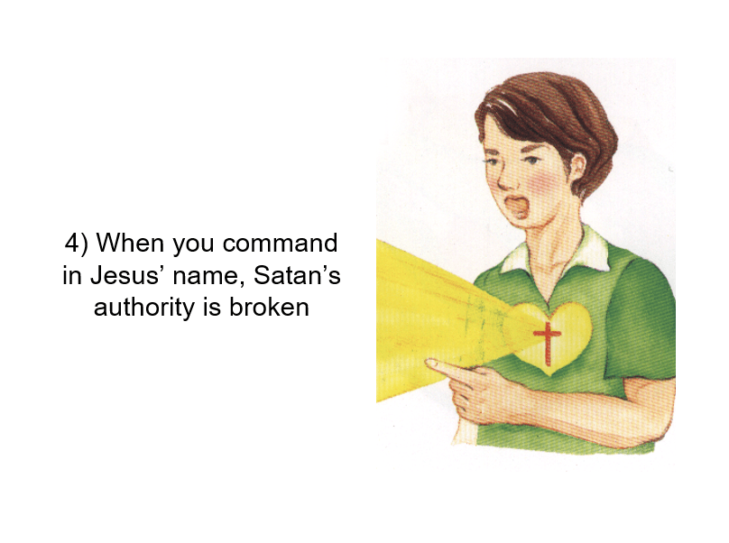 But when you use the authority of Jesus Christ's name, Satan is bound and must flee.